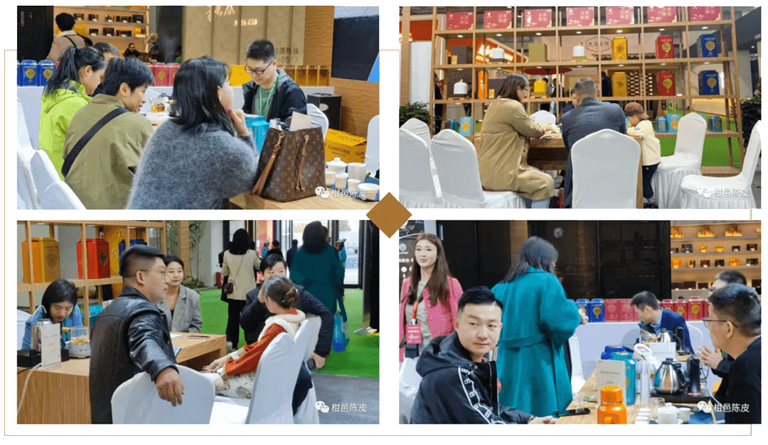 开展首日,柑邑的展位便吸引了众多茶客前来详细咨询了解,现场参观人员络绎不绝,大家在陈香四溢中了解新会陈皮,共同探讨陈皮行业的发展前景。