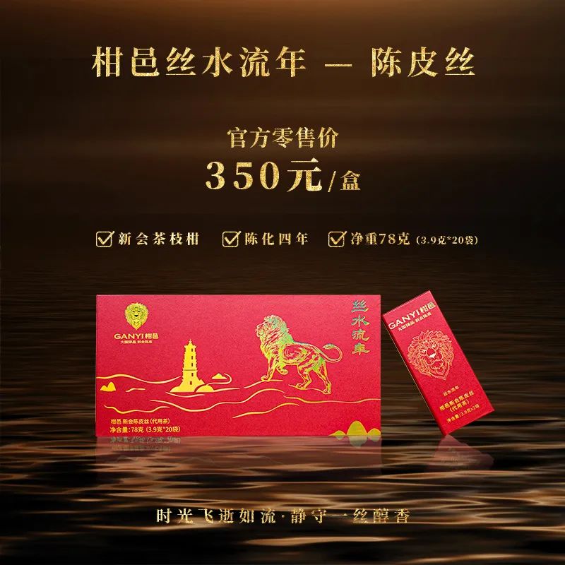 柑邑新品陈皮丝系列“丝水流年”、“黄金狮代”选用四年和七年自然陈化的新会陈皮,历经时间的沉淀,传承经典,好茶需细品,对品质的追求是柑邑不变的初心。