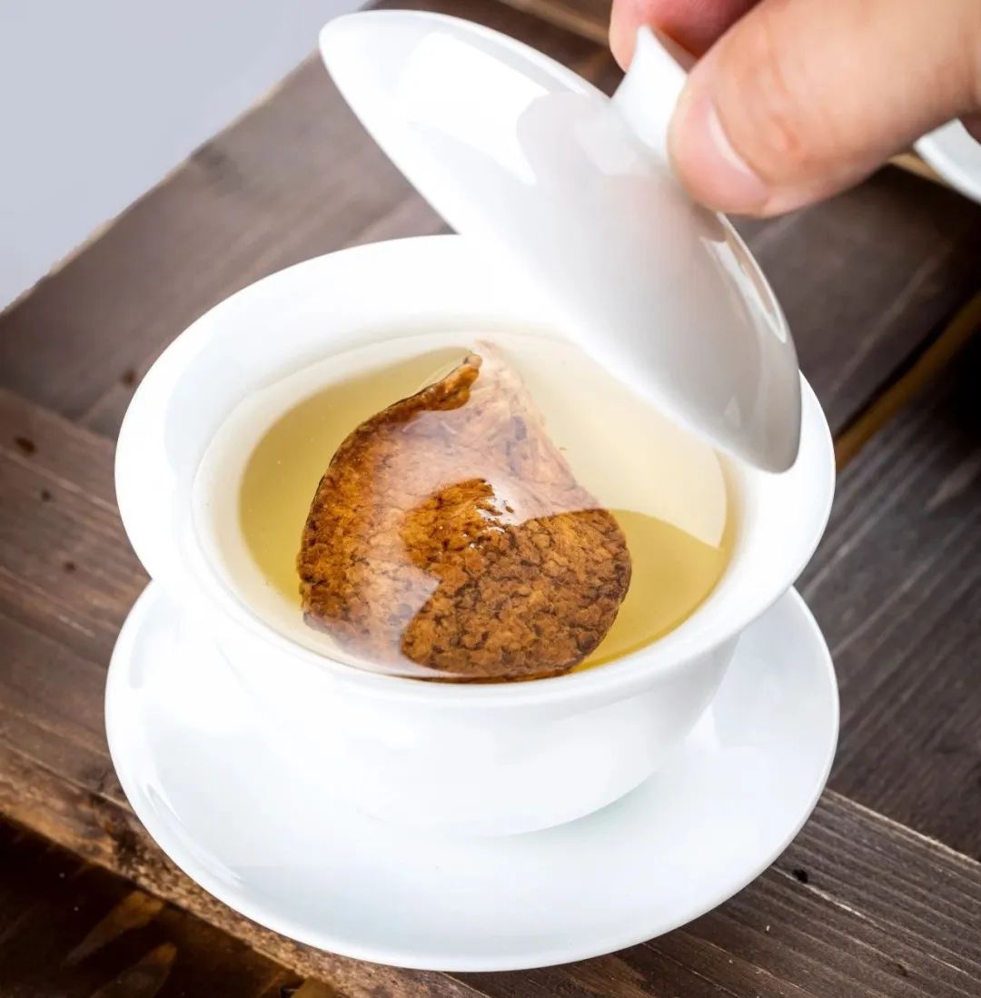 冲泡新会陈皮,以内囊朝上表皮朝下为好。新会陈皮的内囊略带苦感,内囊朝上与壶内水蒸气交互散发芳香,也保证茶汤甘甜口感。而新会陈皮表皮耐煮,表皮朝下不仅能延长煮泡次数,还能让油胞与沸水充分接触,激活挥发油香气。