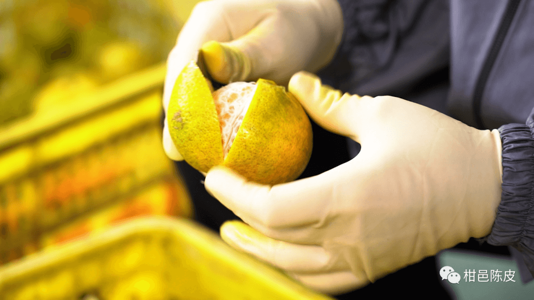 以上两种开皮方式各有千秋,新会柑的果皮韧性较大,质地柔软,开成三瓣不容易烂,意外主要发生在翻折的过程,或者是人工开皮的过程。至于后期的搬运、存储、翻晒、包装、运输等过程,有些是因为新会陈皮陈化时间长,本身质地变化产生的,也有运输中各地道路状况的问题,更有储存的容器和方式的原因。