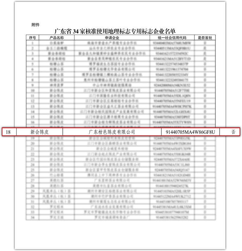 核准柑邑陈皮产品使用国家地理保护专用标志