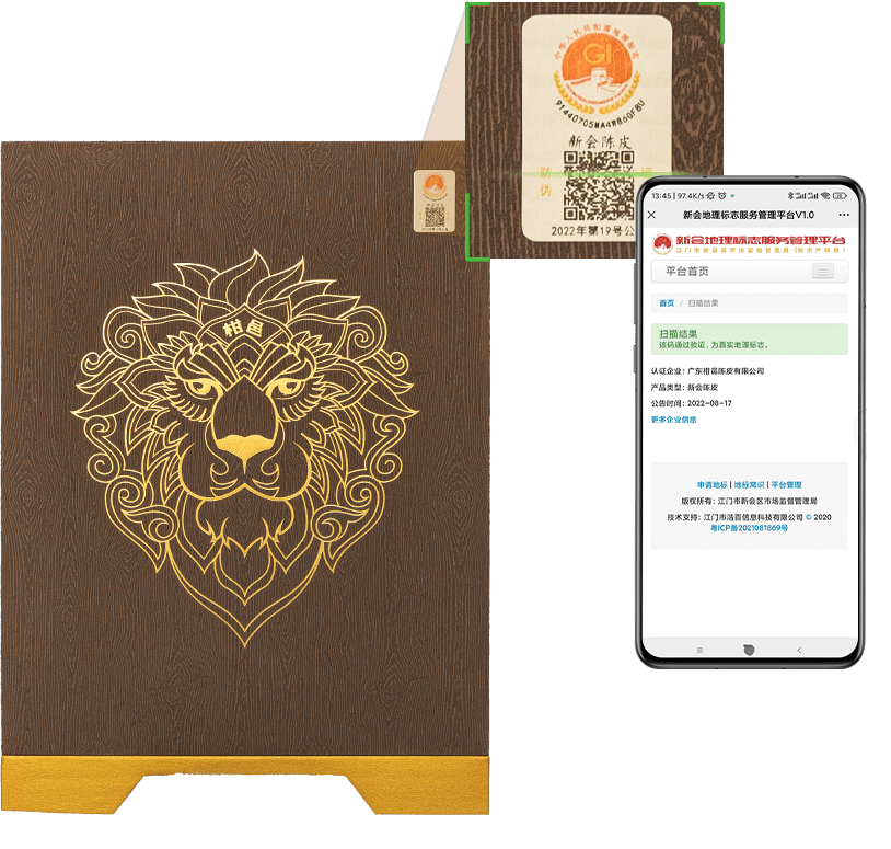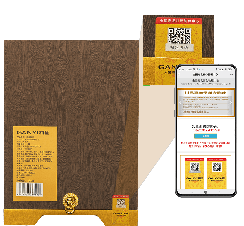 除了新版国家地理保护标志,柑邑陈皮的每一罐产品上都有可追溯二维码,二维码具有唯一性,若出现二维码多用或扫描异常等情况,后台会发出检测警告,以保障消费者和商家的合法权益。