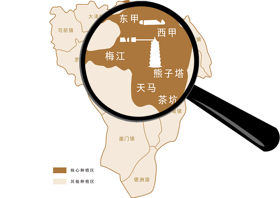 东甲、梅江、茶坑、天马、西甲 均位于新会陈皮的地理标志产品保护范围